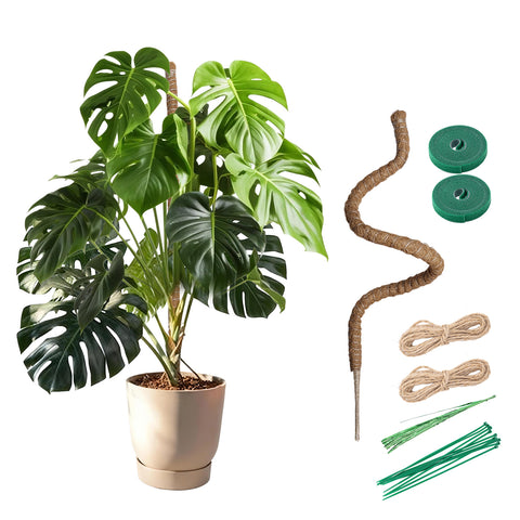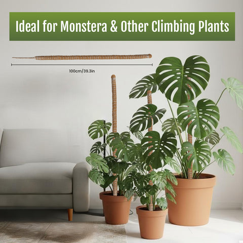 Premium Coco Coir Moss Pole for Plant Support: Crafted from natural coconut coir, 2-Pack 100cm/39.3 inch bendable moss poles offer moisture retention and air permeability.The inner rod features a pointed wooden stake at the base, enabling effortless and secure soil insertion. Ideal for Monstera, Pothos climbing plants