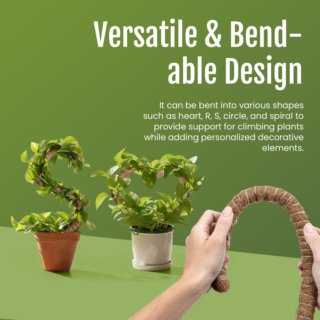 Bendable Design for Custom Plant Growing: Flexible coir poles shape into Hearts, Rches, S-shape, circle, spiral, promoting vertical growth and space-saving for indoor vines. Durable coco coir enhances root attachment, perfect for Philodendron and creepers.