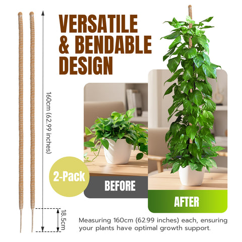 Versatile & Bendable Design: This 2-Pack 62.99 inch (160 cm) Coconut Post offers an efficient and space-saving solution for supporting climbing plants like Monstera, Pothos and more. The flexible design allows you to bend the pole so that your plants are optimally supported in their growth.