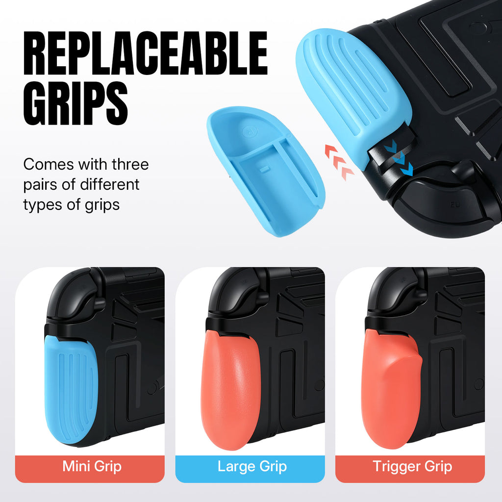 3 Interchangeable Grip Sizes: Includes 3 pairs of ergonomic grips (Mini, Trigger, and Large) to fit all hand sizes. Whether you have small hands or prefer a bulky hold, simply snap on the grips that suit you best to prevent hand fatigue and cramping during marathon gaming sessions.