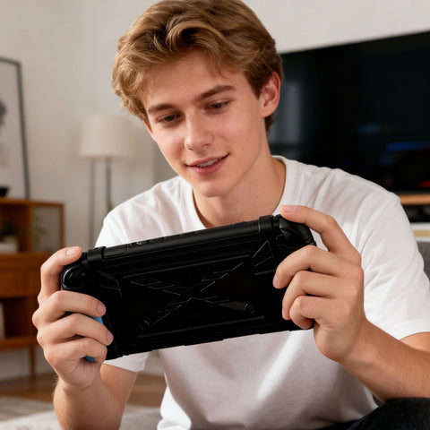 Enhanced Ergonomics & Protection: The curved palm design fits snugly in your hand, offering a non-slip, comfortable hold that enhances control. Made from durable, shock-absorbing material, this case protects your device from daily drops, scratches, dust, and fingerprints.