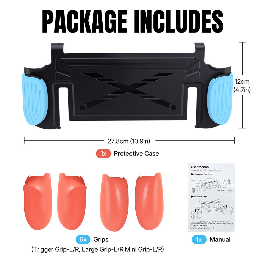 Easy Installation & What’s Included: Features a hassle-free slide-in design (install from the top) for a secure fit. Package contains: 1x Protective Case Body, 1x Pair of Trigger Grips, 1x Pair of Large Grips, and 1x Pair of Mini Grips. (Console is NOT included).