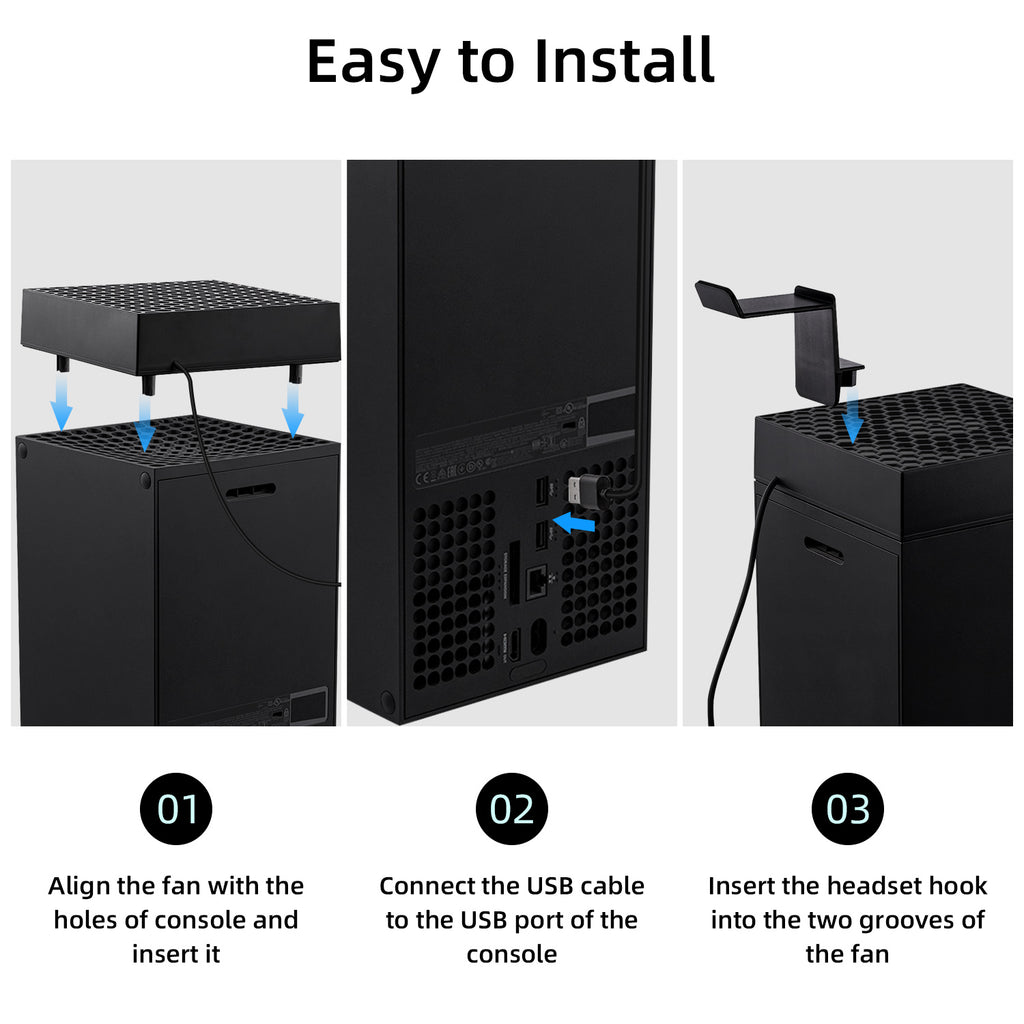 Specially Designed for the Xbox Series X: Tailored to fit the unique ventilation system of the Xbox Series X, this cooling fan boasts a clever design that integrates seamlessly with your console, ensuring efficient heat dissipation without compromising on style.