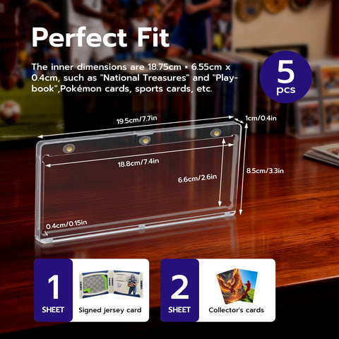 Perfect Fit for Your Treasures: The inner dimensions (18.75cm x 6.55cm x 0.4cm) are specially designed for displaying booklet (such as compatible with "National Treasures" and "Playbook") or two standard collection cards side by side. It's an ideal storage solution for sports cards, and other collectibles.