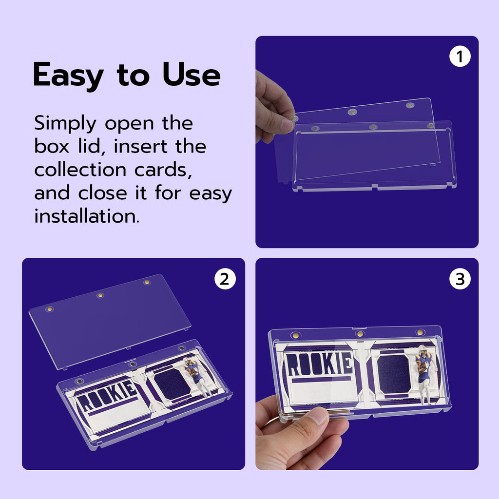Effortless to Use: Simply open the magnetic lid, insert your cards or booklet, and close it—installation is complete in seconds. The sleek, transparent design allows for immediate display and easy viewing of your collection without needing to remove them.
