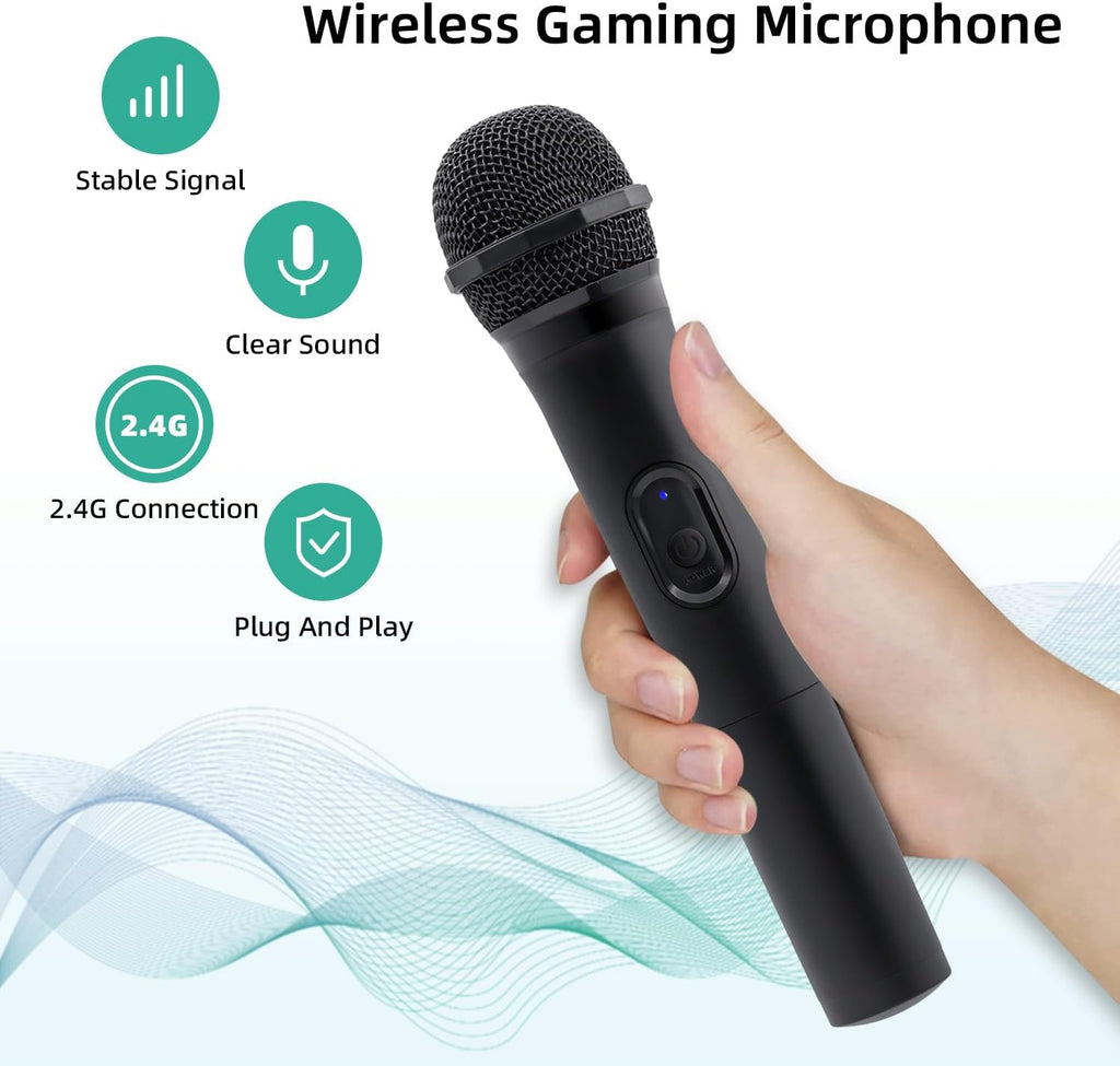 【Compatible】Wireless microphone only works on your PS5, PS4/Pro, PS3, PS2, Xbox Series X|S, Xbox One X|S, Xbox One, Xbox 360, NS Switch, Switch OLED, Wii, WiiU, PC, basic coverage of popular gaming console models.
