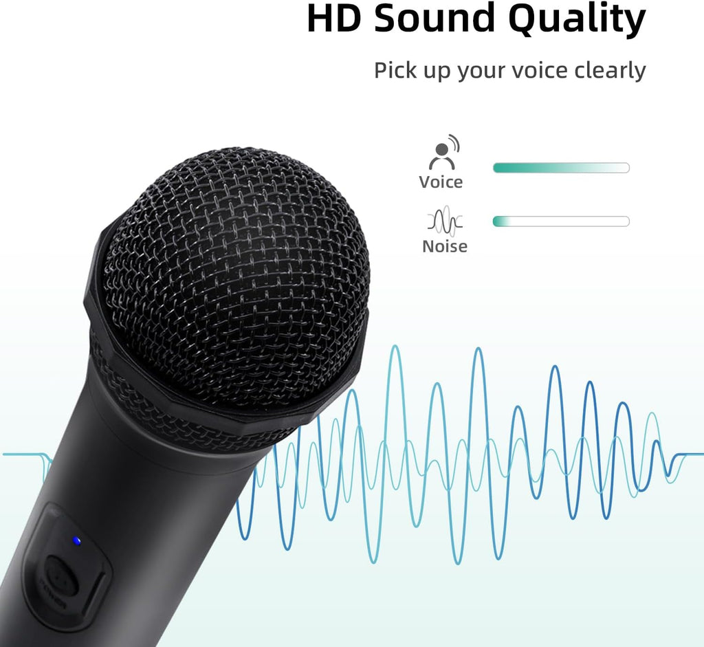 【Ergonomic design】The working distance of our microphone can reach 15 meters. The low latency of 25ms provides undistorted sound quality, you can move freely and enjoy your singing.