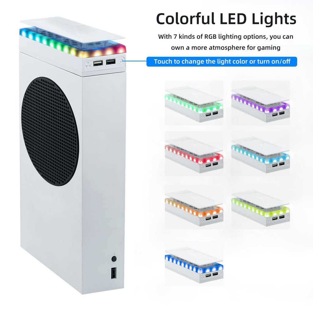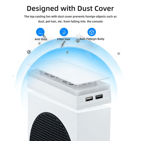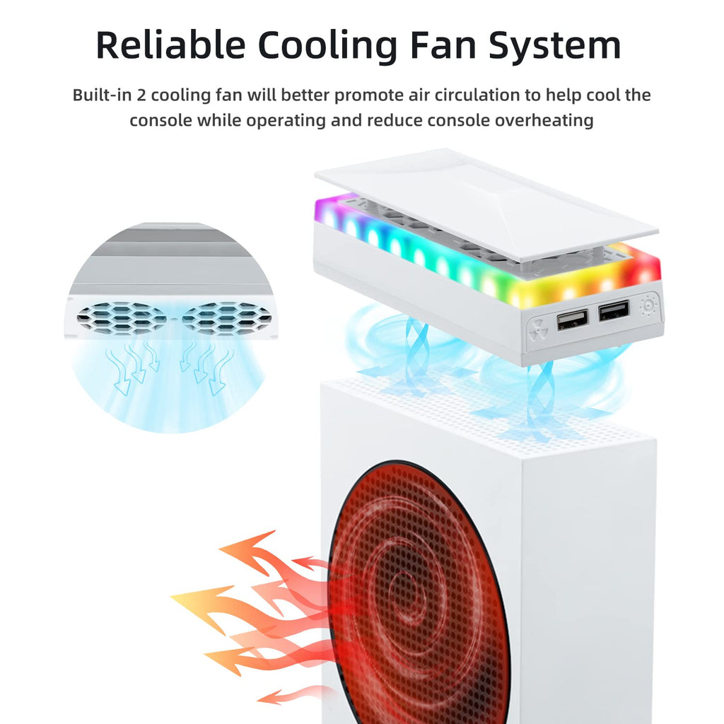 【Special Design】High speed dual cooling fan with RGB lighting specially designed for Xbox Series S. 3 fan speed level available. Installed on the top of the console case allows to quickly draw and blow away the running heat of the console. Help to cool your console down in an effective way.