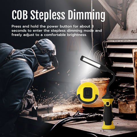 CONTROL YOUR RUNTIME (STEPLESS DIMMING) – Worried about battery life? You are in control. While max brightness pumps out dual COB blinding light for heavy tasks (1.5 hours), you can long-press to dim the light, extending runtime significantly when you just need standard visibility. Plus, the dedicated Top Flashlight Mode lasts up to 11.5 hours—perfect for long shifts or camping trips.